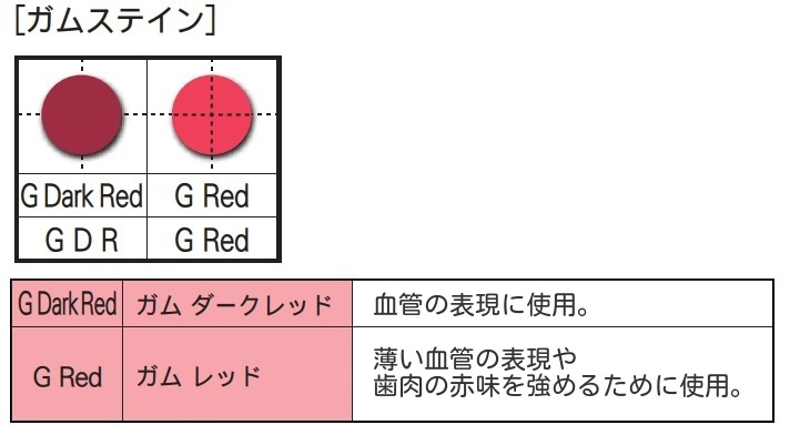 さらに、変色歯肉や血管などを表現するガムステイン※4色もあります。