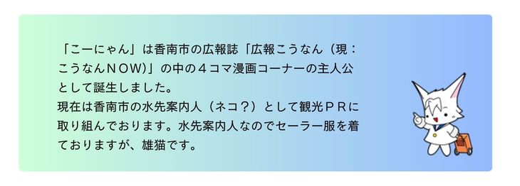 こーにゃんが生まれた経緯について(https://kounan-navi.com/feature/konyan/)より引用。