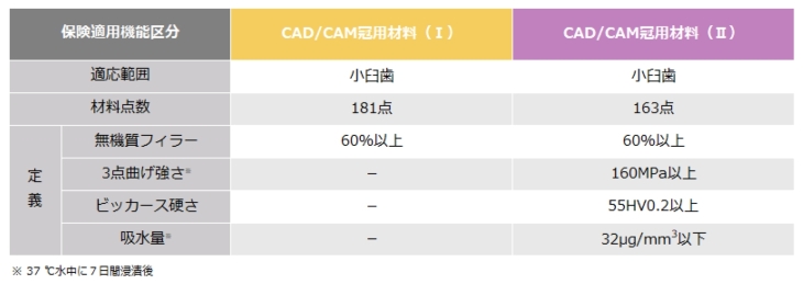 2020年4月の診療報酬改定によって、小臼歯用のCAD/CAM冠用材料は「CAD/CAM冠用材料(Ⅰ)」および「CAD/CAM冠用材料(Ⅱ)」に区分化されました。