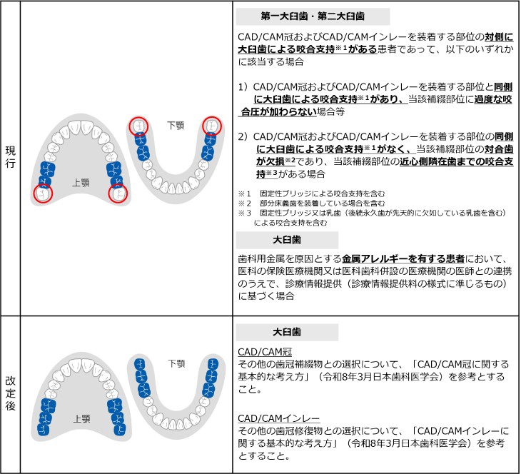 - CAD/CAM冠、CAD/CAMインレーの適用条件見直し
